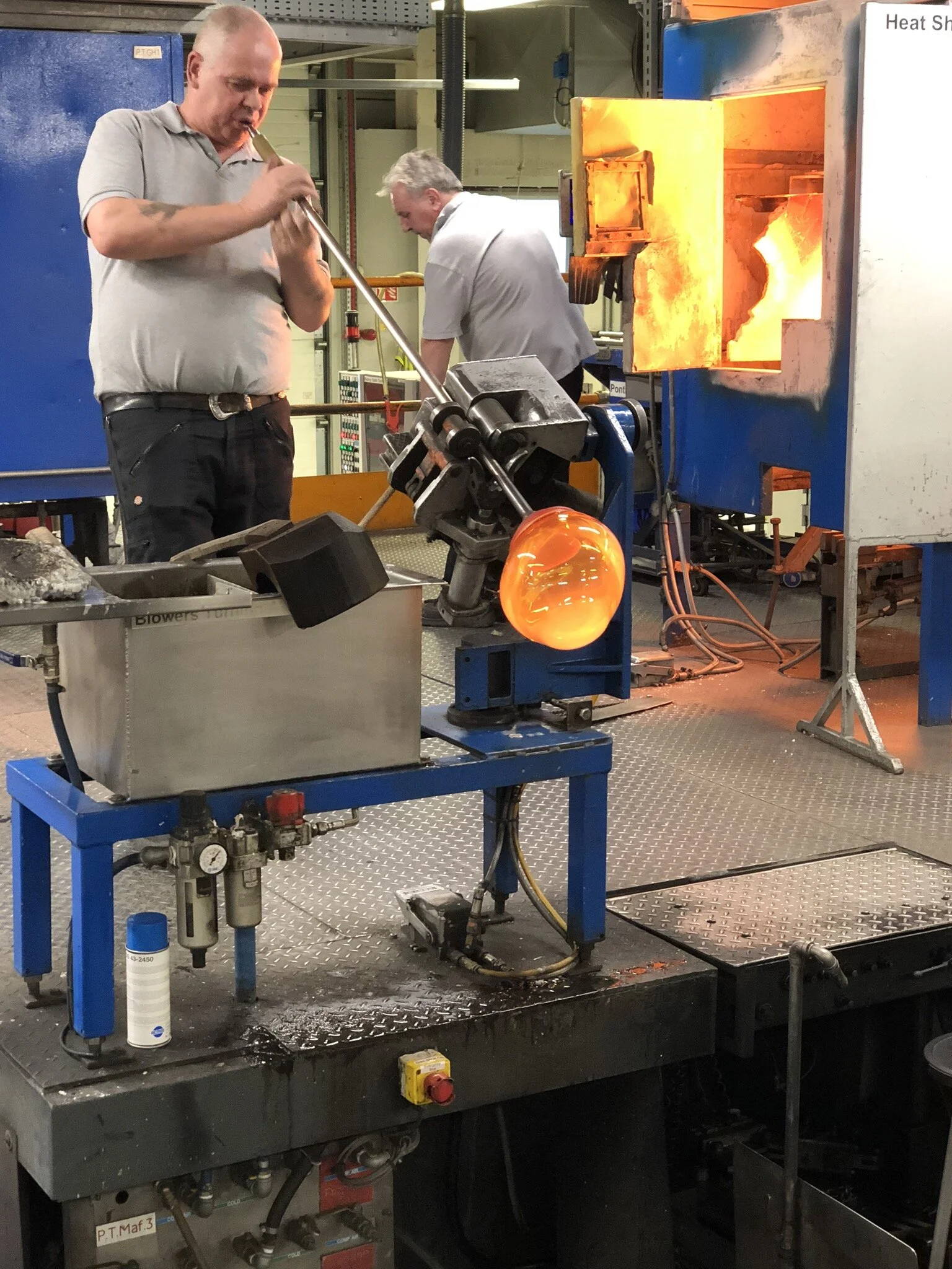 Glass blowing the crystal at Waterford Factory.
