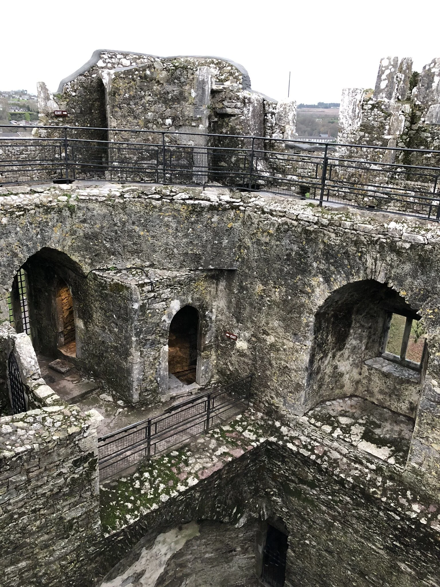 Once inside the castle, we climbed through the hallways and stairs. There are a lot of look-out points to see down into the castle and out onto the grounds. The steps can be slippery and the walkways are narrow, so my Grandma actually waited at the bottom for us. We waved to her from the top!